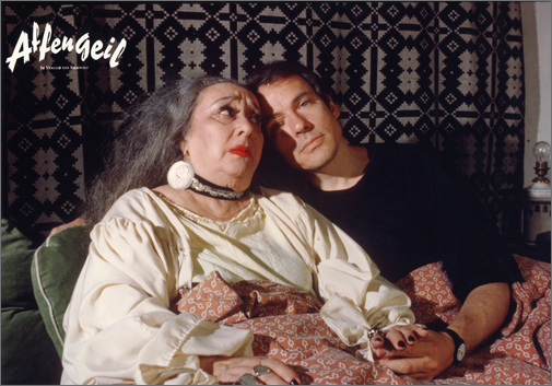 | Lotti Huber, Rosa von Praunheims große Entdeckung, steht im Zentrum dieses semidokumenarischen Films. In dem Film erzählt die vor Lebensmut strotzende 77-jährige Sängerin, Tänzerin und Schauspielerin aus ihrem bewegten Leben. »Wir filmten Lotti als Hexe auf einem Besenstiel, und wir flogen nach Kiel und filmten sie vor ihrem Elternhaus und an den Stätten ihrer ersten Liebe. Lotti spielte eine Doppelrolle als König Faruk und sich selbst in jungen Jahren, wie sie einen rasanten Bauchtanz hinlegt. Sie erzählte, wie sie ihren Bauchnabel mit einer Perle verschlossen hatte, weil der ägyptische König dafür bekannt war, im Nabel seiner Tänzerinnen glühende Zigaretten auszudrücken.« (Rosa von Praunheim)